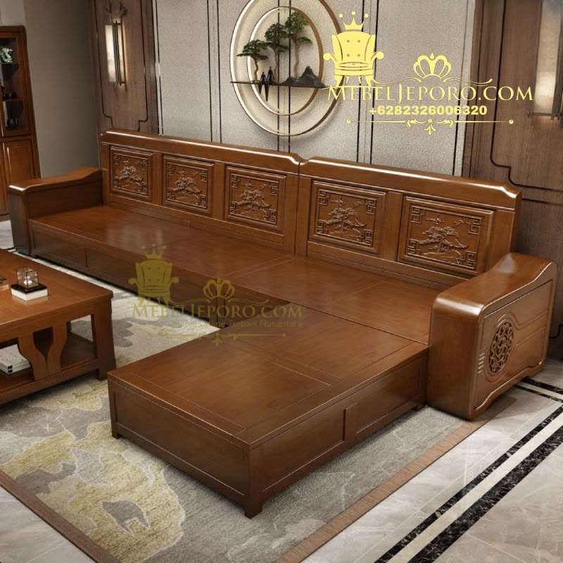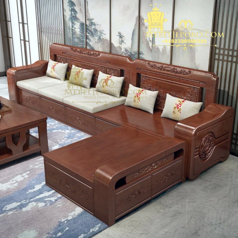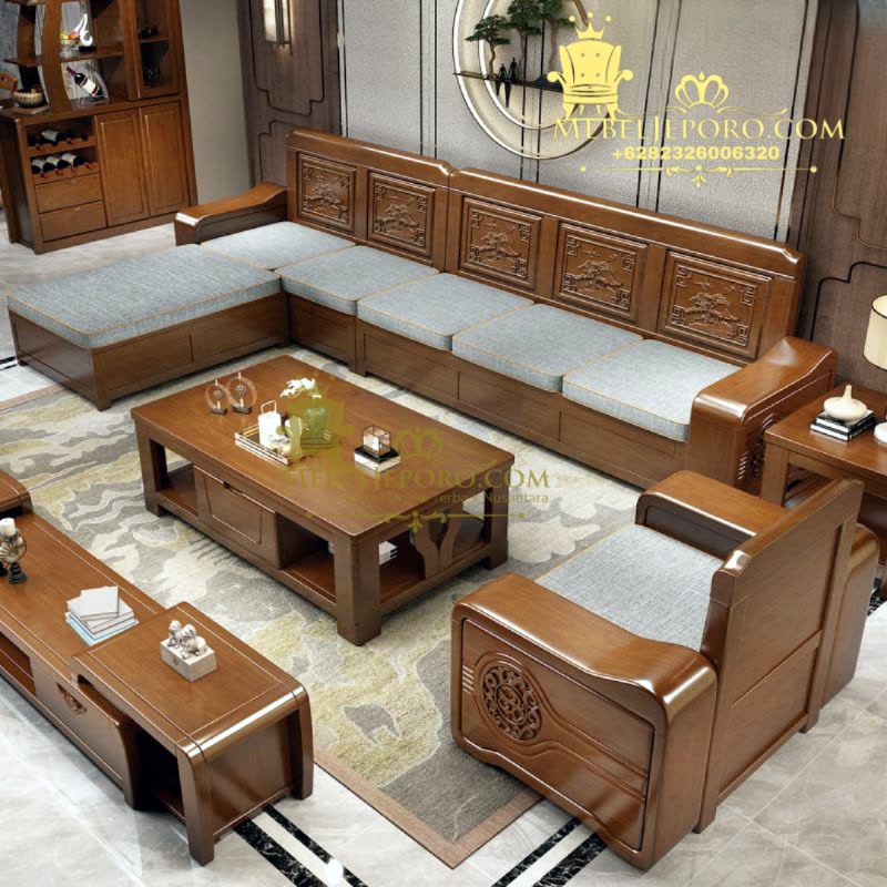 Kursi Tamu Sudut Minimalis Modern – Kayu Jati Perhutani by MebelJeporo.com