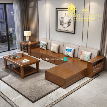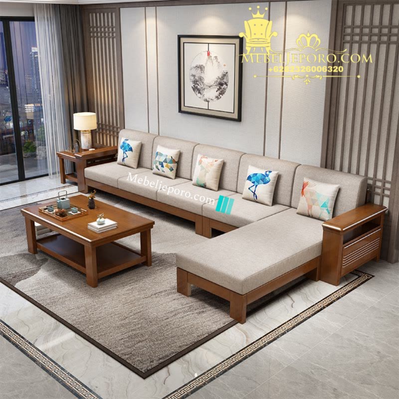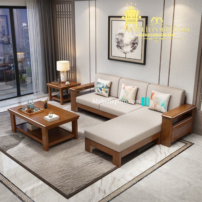 Kursi Tamu Minimalis Sudut Modern – Bahan Kayu Jati Premium | Produk by MebelJeporo.com