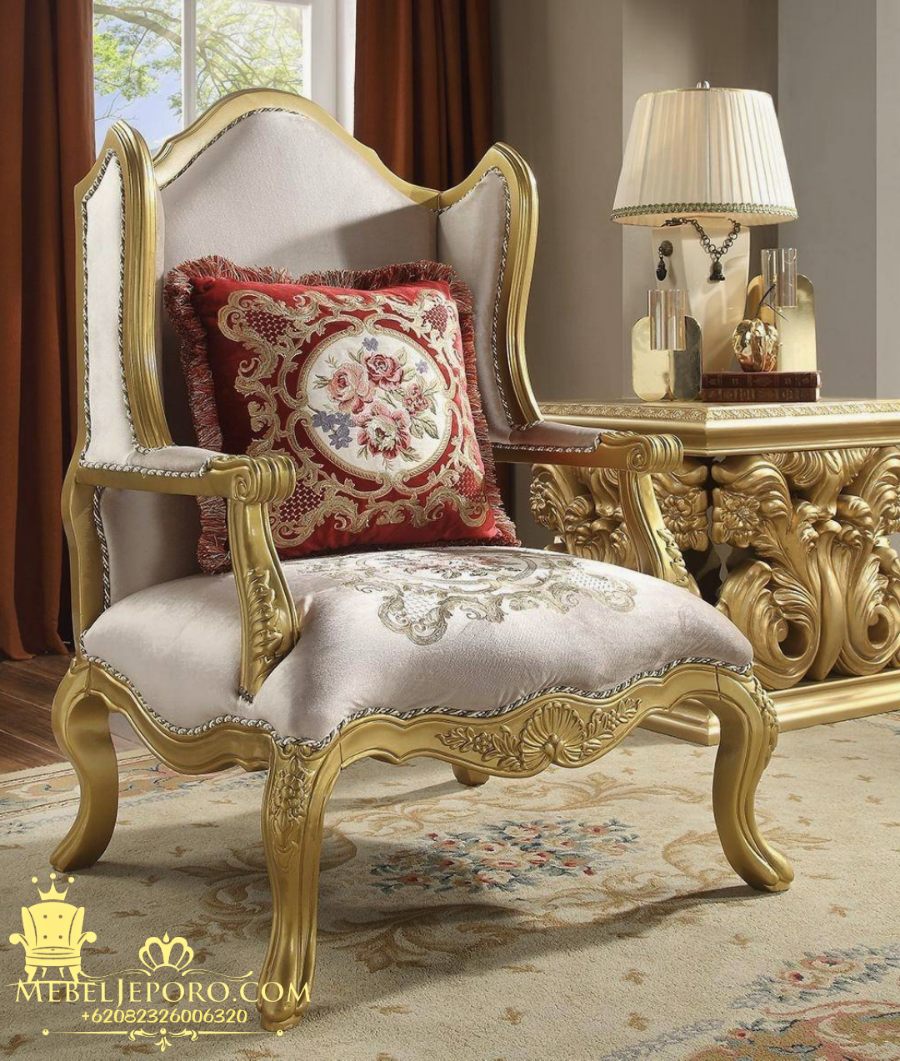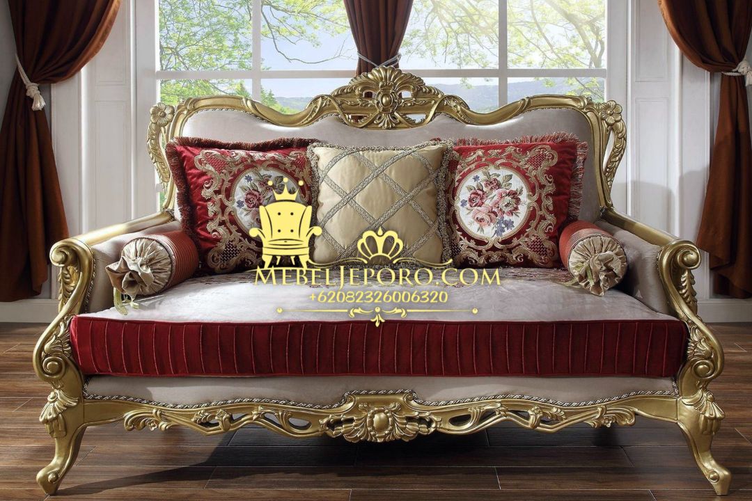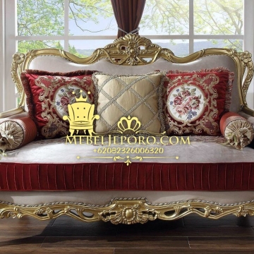 Sofa Tamu Ukir Mewah warna Emas Set 3 2 1